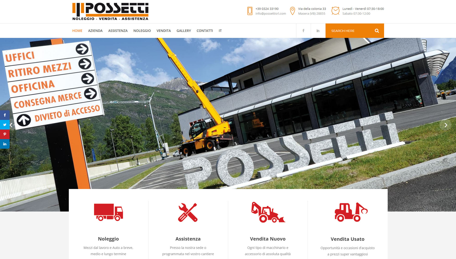 La ditta Possetti S.r.l. opera sin dal 1960 nel settore delle attrezzature per l’edilizia, per i cantieri, per le cave e per l’industria. Possetti S.r.l. Vi offre servizi di vendita, assistenza e noleggio, in modo che possiate avere macchine sempre efficienti e sicure, in qualsiasi tipo di lavoro oltre che essere periziate annualmente secondo le norme vigenti.